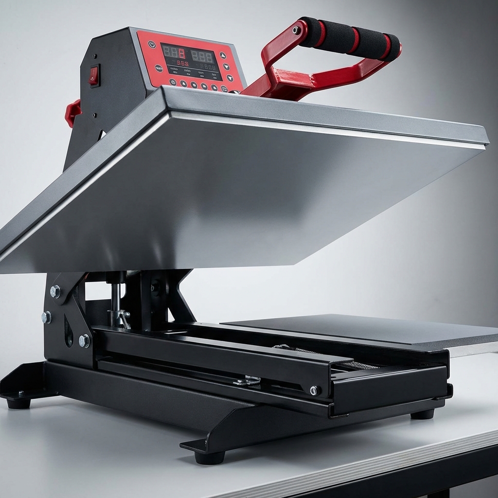 Achieve pro-grade transfers with this 16×24-inch heat press machine, featuring a touch screen and slider designed for speed, safety, and accuracy in demanding studios.