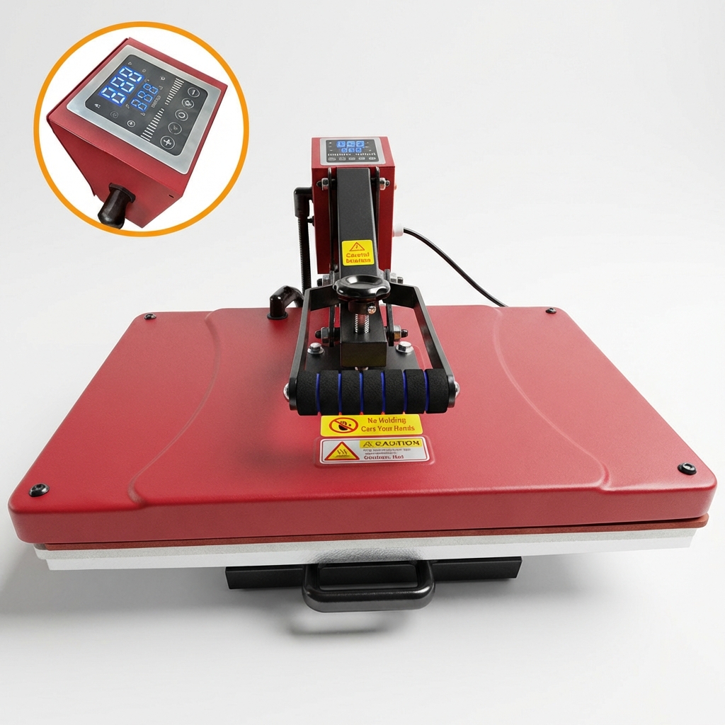 - Flat press versatility for sublimation, DTF, HTV, and vinyl