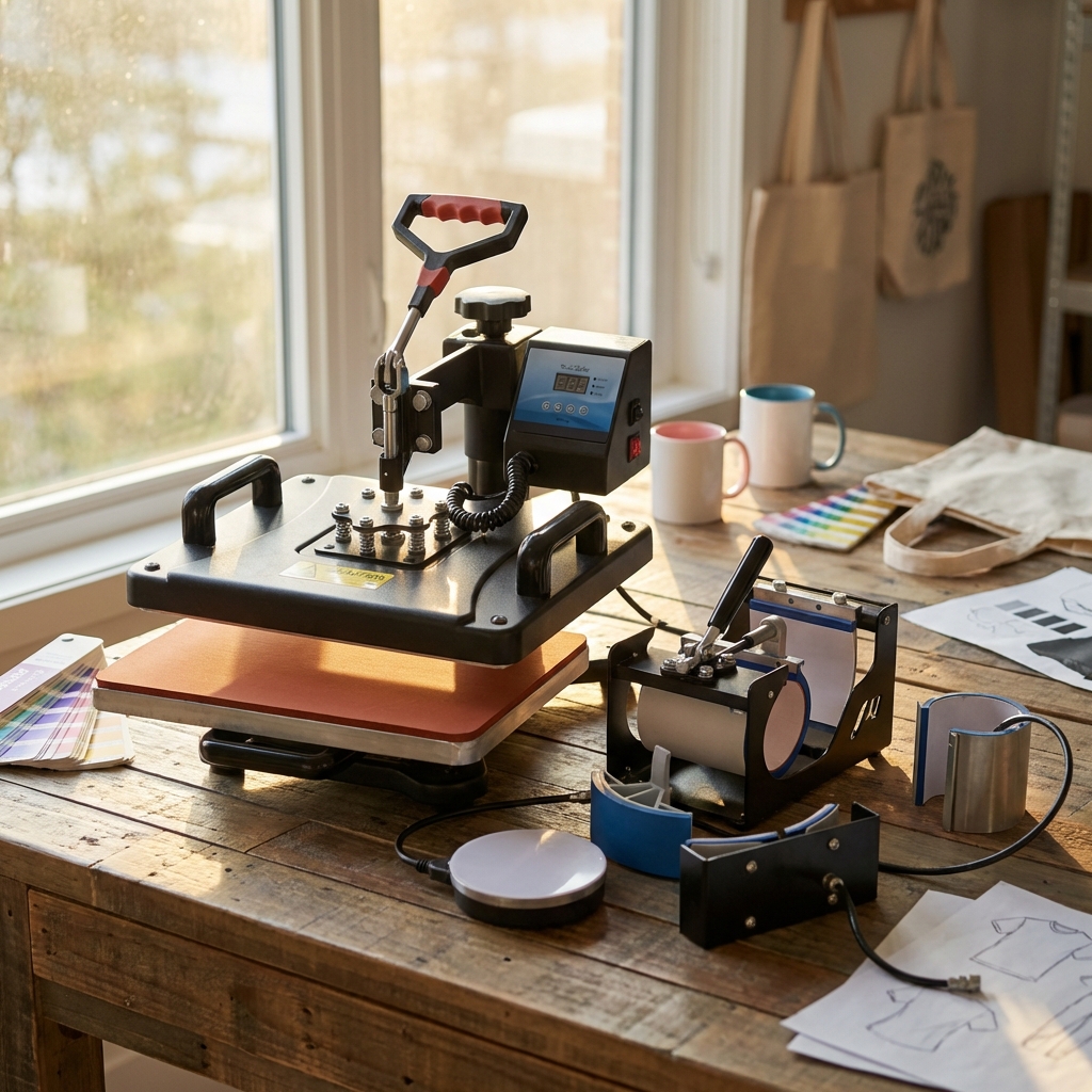 Constructed from robust materials, it promises durability and reliability. For optimal performance, maintain cleanliness and follow the included care instructions. Elevate your crafting with the 5-in-1 Combo Heat Press Machine with Slider, your partner in creativity and entrepreneurship.
