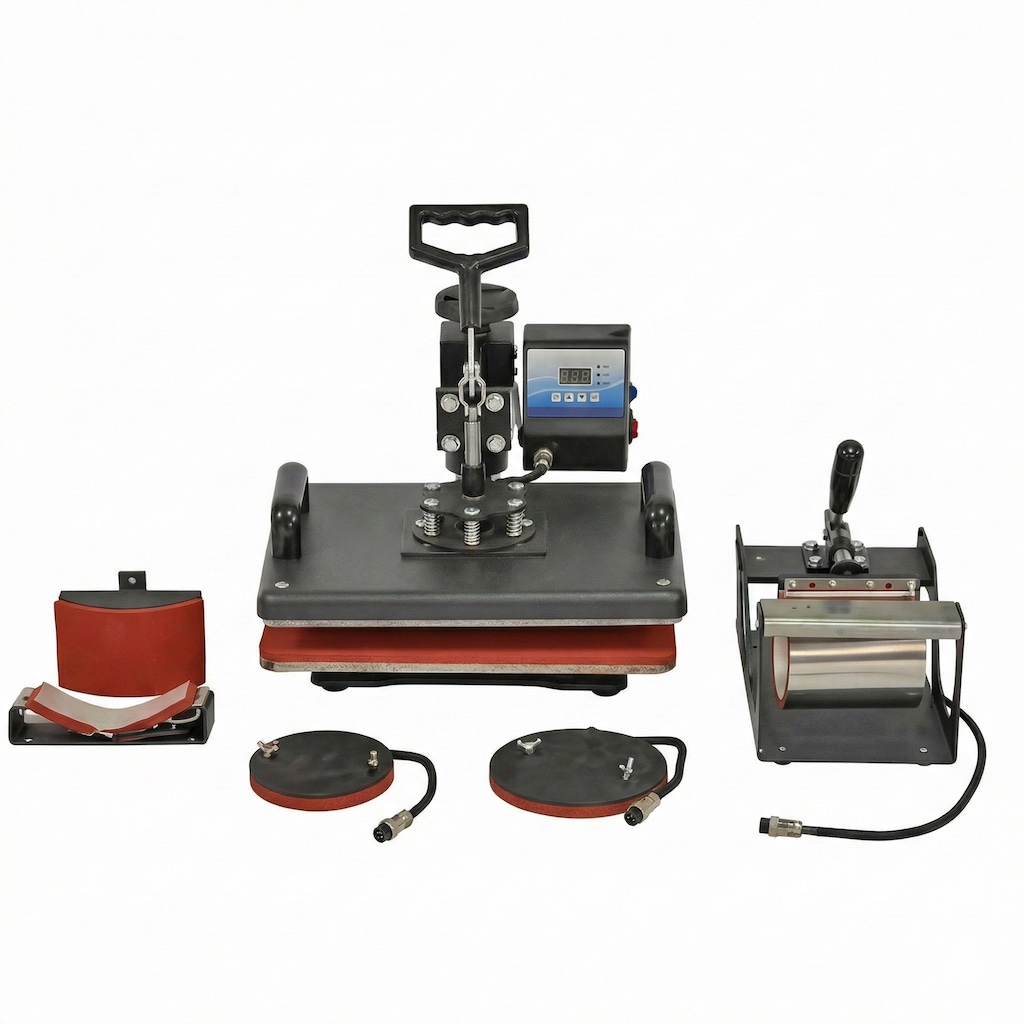 Ideal for small business owners, crafters, or print-on-demand entrepreneurs, the 5-in-1 combo offers excellent flexibility without the need for multiple machines. Its interchangeable heating elements make switching between attachments quick and effortless, helping you handle a wide range of custom projects with ease. Compact yet powerful, this heat press is designed to save space while maximizing productivity — a must-have addition to any creative or commercial workspace.
