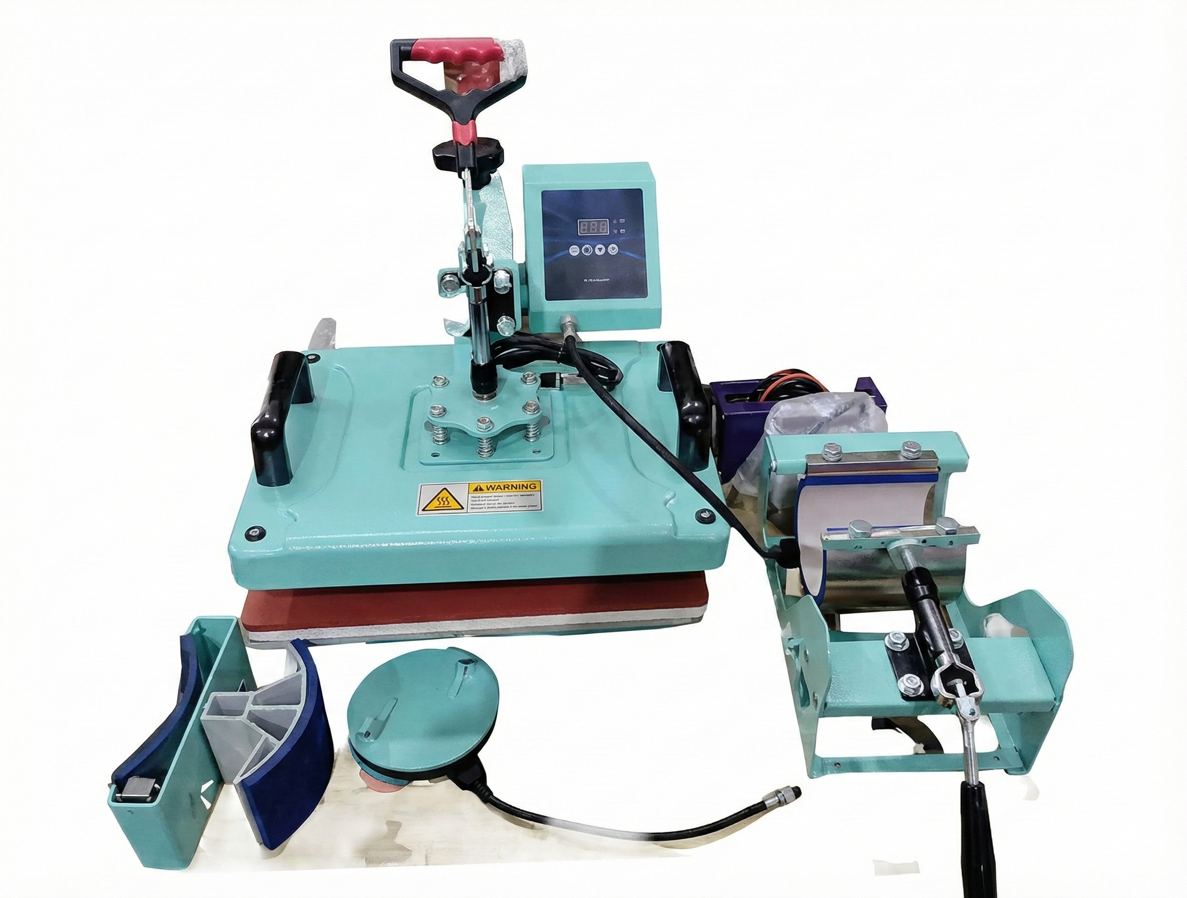 The 8 in 1 Machine Mint Green is an industrial-strength, semi-automatic powerhouse designed to handle all sublimation items with a high production capacity of 50 prints per hour. Featuring a 12 by 15 inch heating plate and a specialized swing-away design, it ensures uniform pressure and safety while printing on cotton, metal, ceramics, and glass. This versatile 1250W machine is perfect for high-volume gift shops or professional studios creating custom t-shirts, mugs, hats, plates, and unique promotional advertisements with incredible speed and precision.