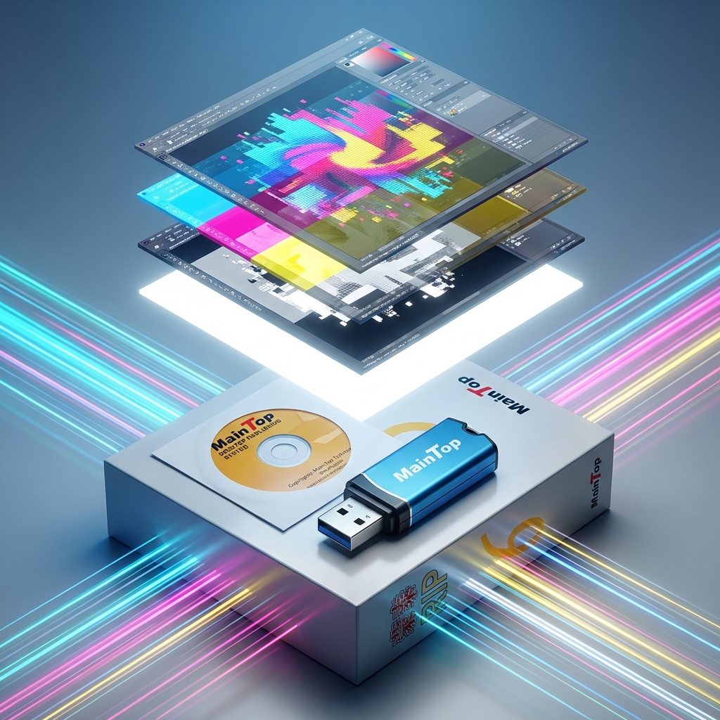 MainTop RIP Software is a widely used RIP solution for inkjet printing workflows, commonly deployed across advertising production, printing & publishing, office printing, and document/bill printing. It’s designed to work with major printers in the market and ships with a USB dongle for licensing.