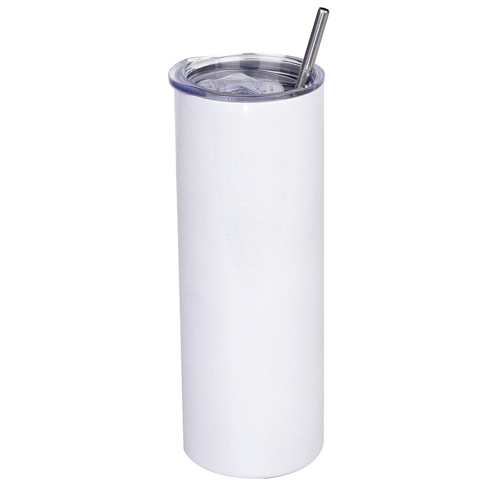The white sublimation surface accepts prints beautifully, delivering stunning, full-color designs that wrap around the entire tumbler. Includes reusable straw and secure, leak-proof lid for convenient on-the-go use. Sweat-free exterior stays dry and comfortable to hold, protecting surfaces and bags from condensation.